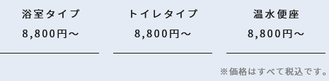 当方は換気扇工事にも対応しております。浴室に付けるタイプ、トイレに付けるタイプなどご自宅に合ったタイプをお選びください。また、温水便座の施工も対応しておりますので、お気軽にご相談ください。